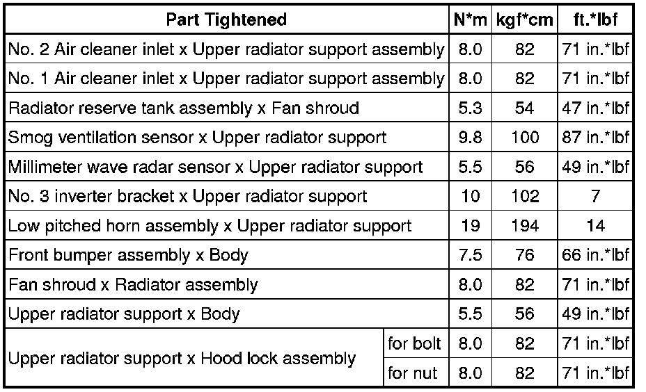 SPECIFICATIONS: 2GR-FXE COOLING: TORQUE SPECIFICATIONS