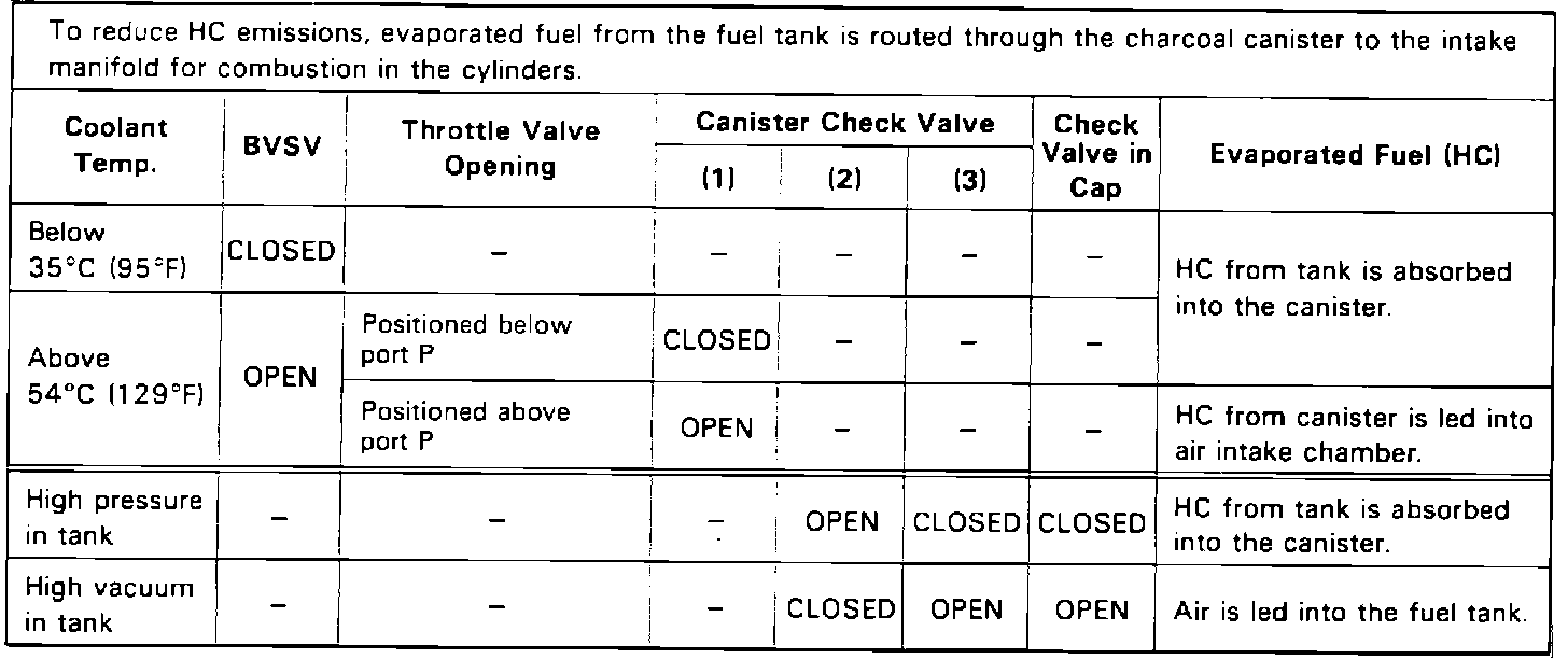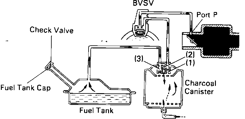 The system consists of a bimetal vacuum switching valve (BVSV) and a charcoal canister.