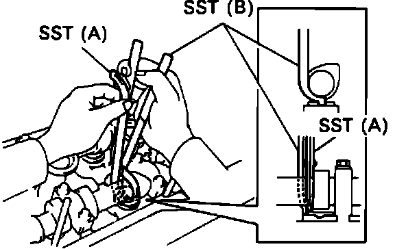 e. Place new shim on valve lifter. Press down lifter and remove shim removal tools.