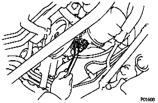 CAUTION: Work must be started after 90 seconds from the time the ignition switch is turned to the LOCK position and the negative (-) terminal cable is disconnected from the battery.