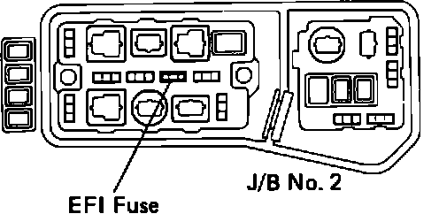 - After repair of the trouble areas, the diagnostic code retained in the ECU memory must be cleared out by removing the EFI fuse (2OA) from J/B No. 2 for 10 seconds or more, with the ignition switch OFF.