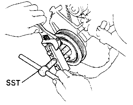 (b) Using SST, remove the pulley. SST 09213-60017