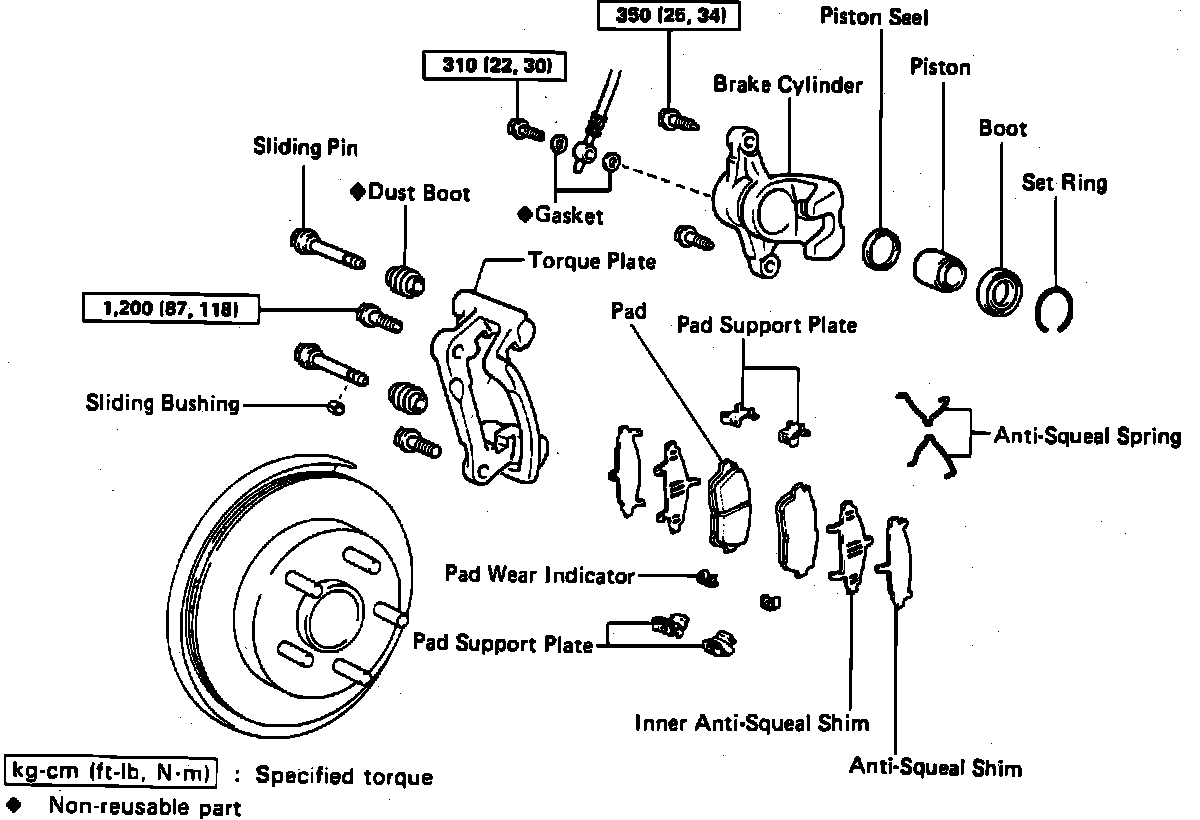 8. On models with single piston calipers, use hammer handle or equivalent to push piston in.