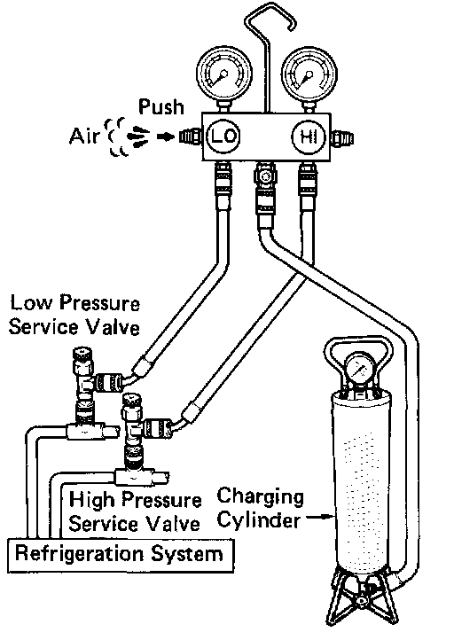 EVACUATING AIR IN REFRIGERATION SYSTEM AND CHARGING WITH REFRIGERANTHINT: Before charging the system with refrigerant, be sure carry out a complete evacuation of the system.
