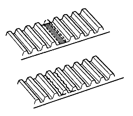 (e) If there is noticeable wear on the belt teeth, check timing cover for damage and check for correct gasket installation and for foreign material on the pulley teeth. If necessary, replace the timing belt.