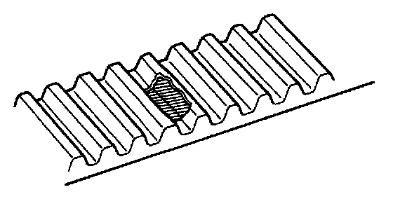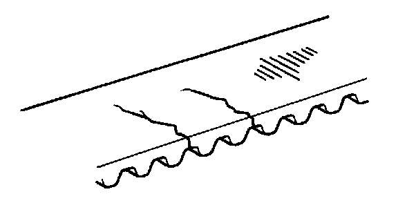 (c) If there is noticeable wear or cracks on the belt face, check to see if there are nicks on the side of the idler pulley lock and water pump.