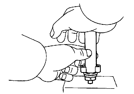 (b) Hold the tensioner with both hands and push the push rod strongly against the floor or wall to check that it doesn't move. If the push rod moves, replace the tensioner.