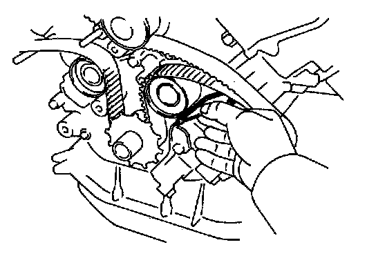14. Install timing belt to RH camshaft timing pulley.