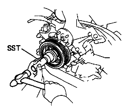 (b) Using SST 09223-46011, and a hammer tap in the pulley.