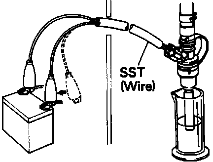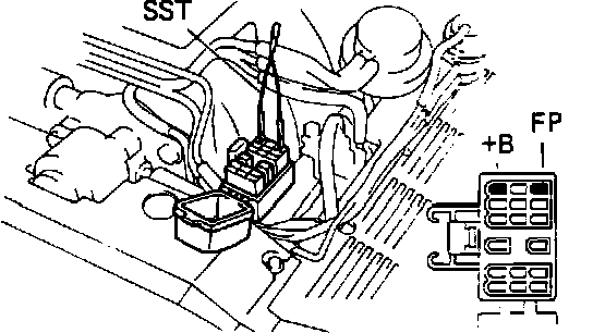 - Pressurize fuel system by installing a jumper wire between Check Connector terminals +B and FP.