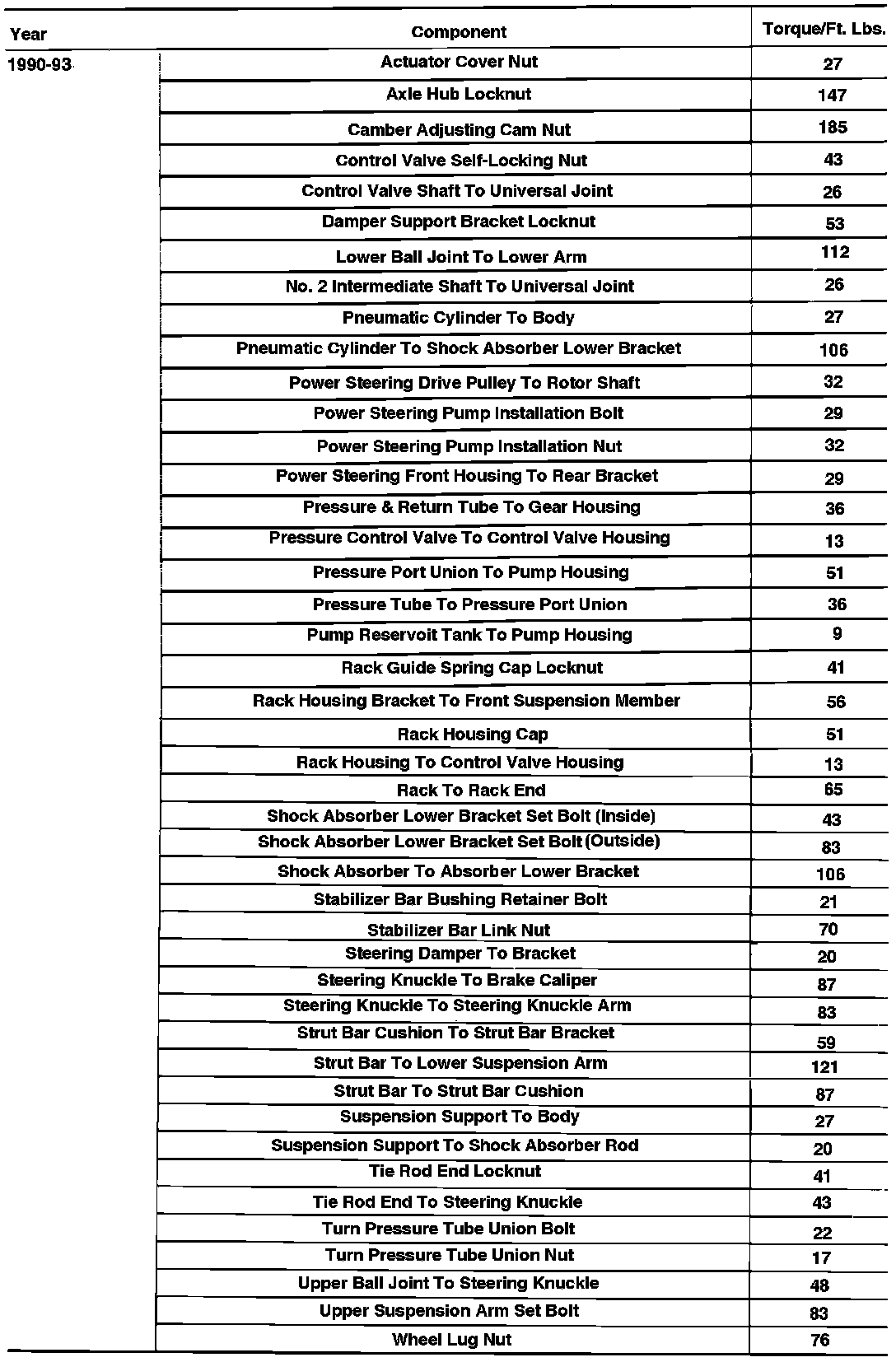 Tightening Specification: