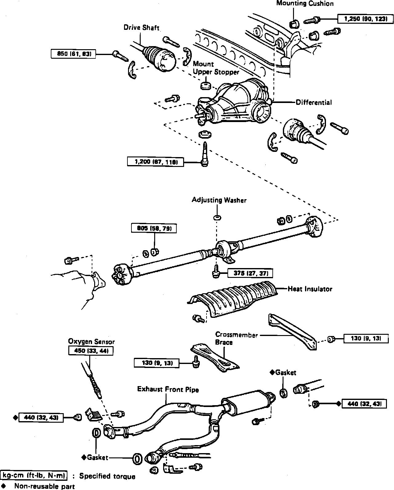 1. Remove exhaust front pipe, then the propeller shaft.