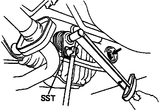 b. Use special service tool No. 09572-50010, or equivalent, to hold rear support bushings in place during tightening, Fig. 2. Torque rear support bolts to 90 ft. lbs.