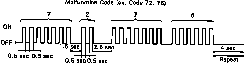 9. If every sensor is normal, the warning light will go On for .25 second and Off for .25 second. If two or more codes are identified at the same time, the lowest numbered code will be displayed first.