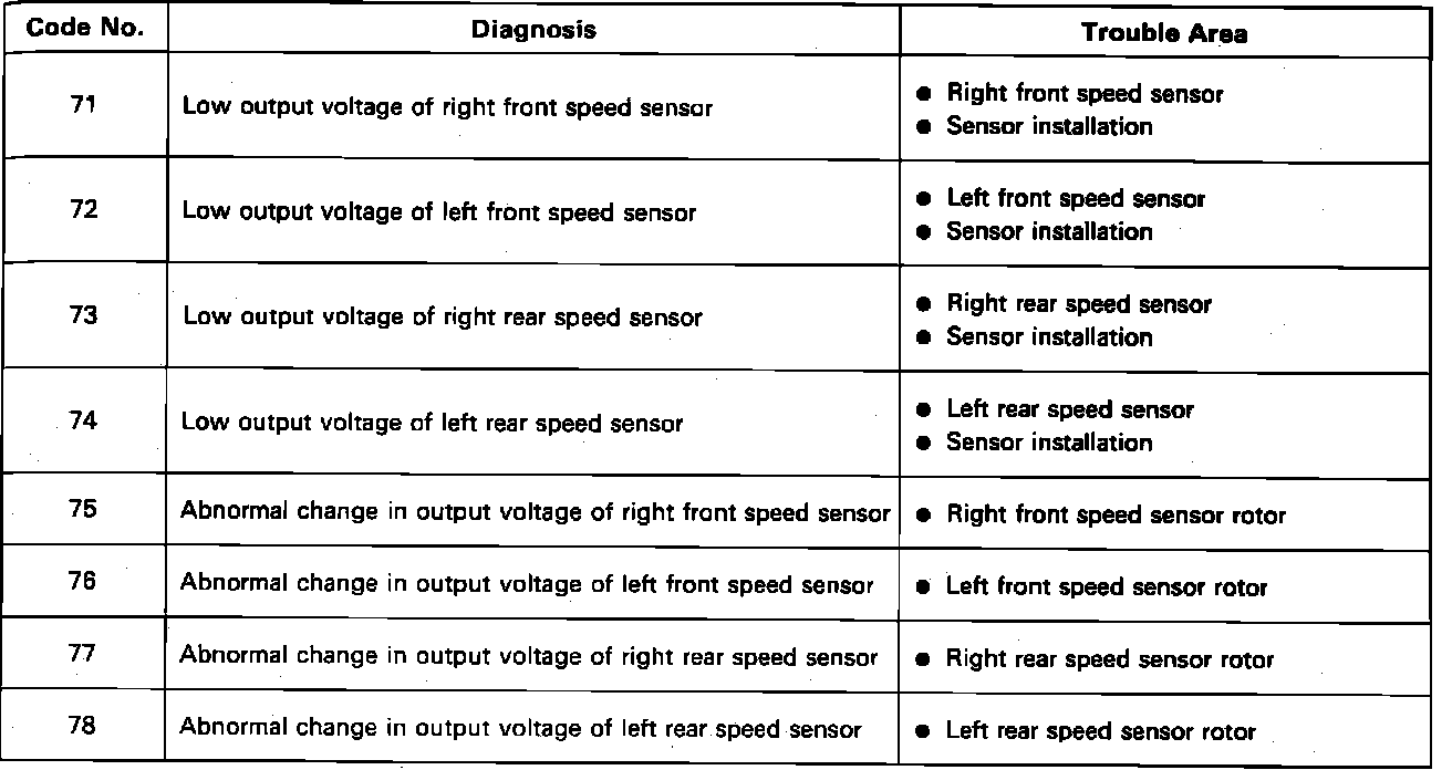 Fig. 18 Speed Sensor Fault (trouble) Code Chart: