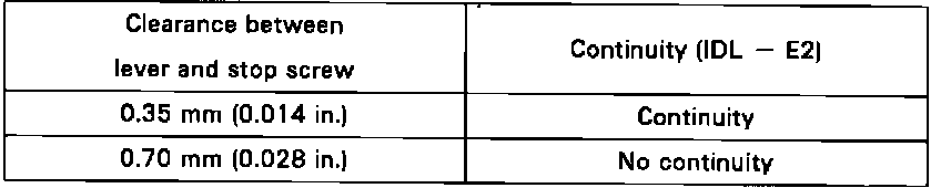 - Insert a 0.54 mm (0.021 in.) thickness gauge, between the throttle stop screw and stop lever.