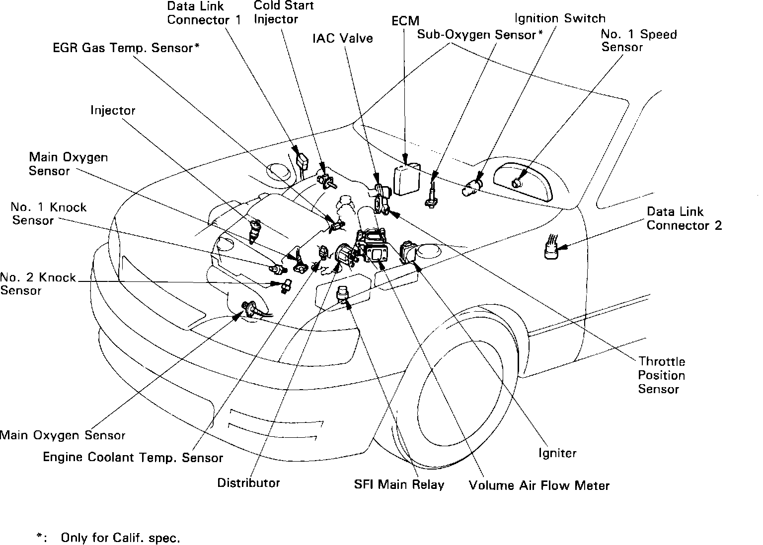 Mounted to the air cleaner box in the left corner of the engine compartment.