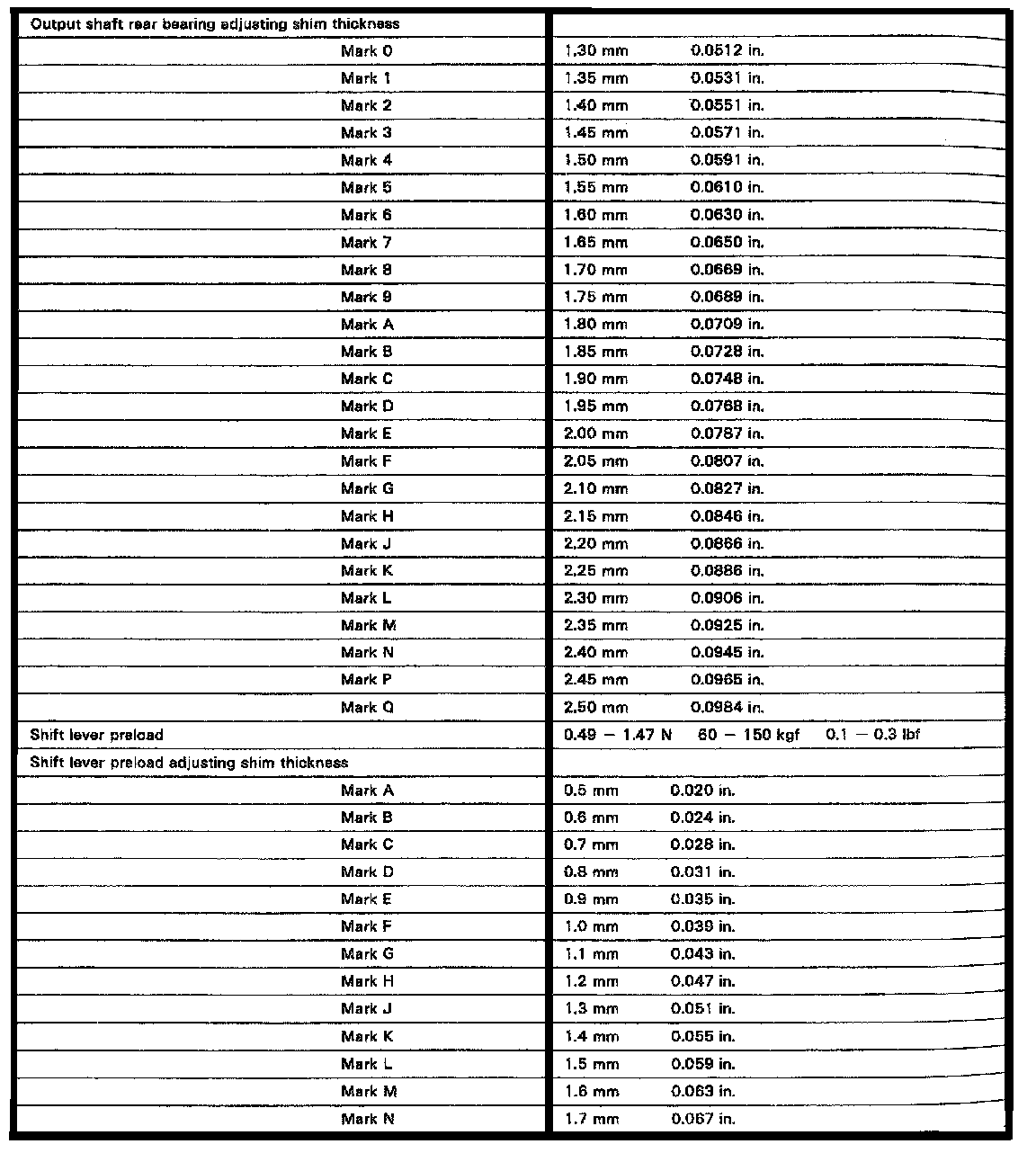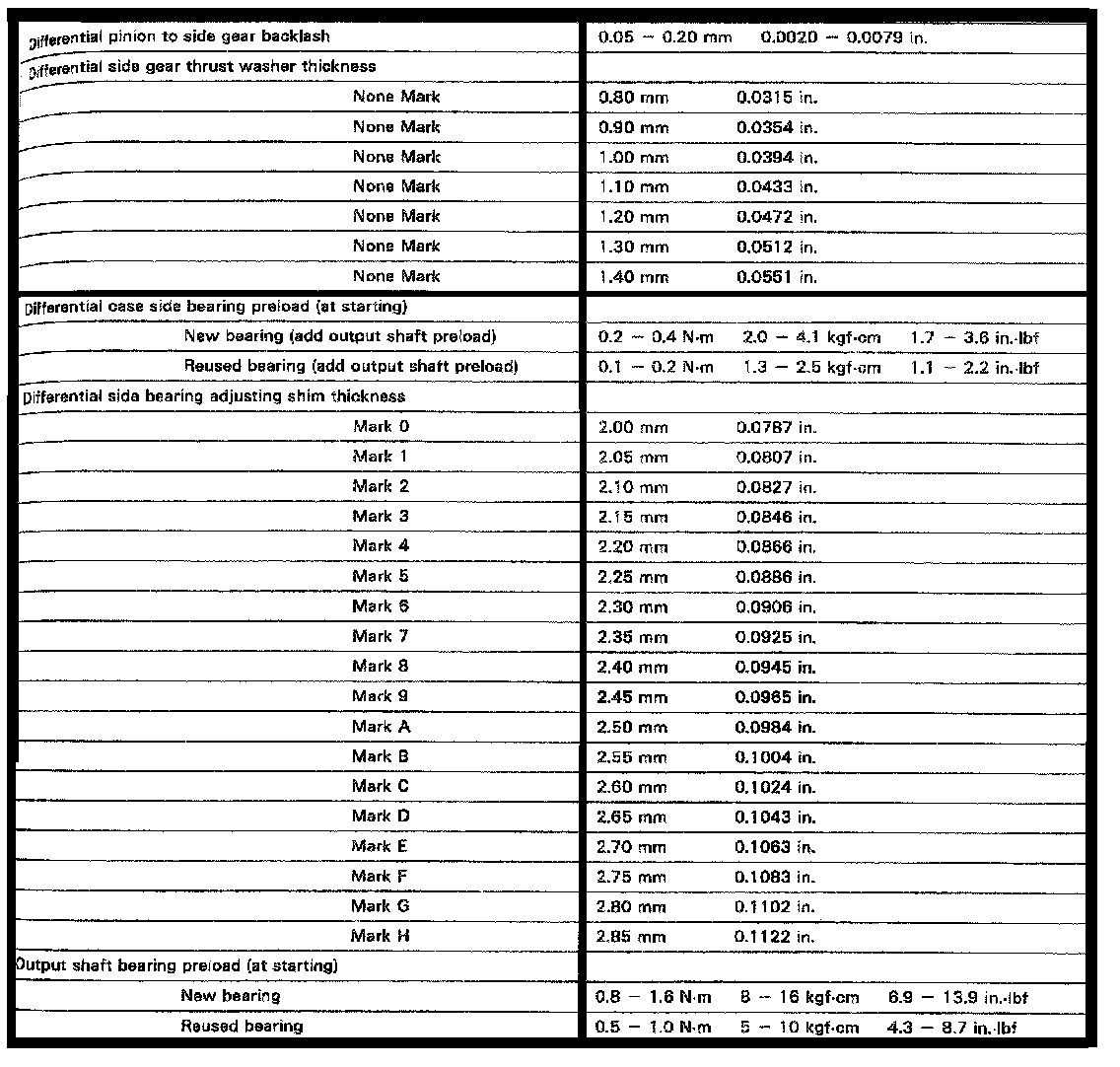 E53 5-spd M/T, Differential Backlash / Bearing Thickness: