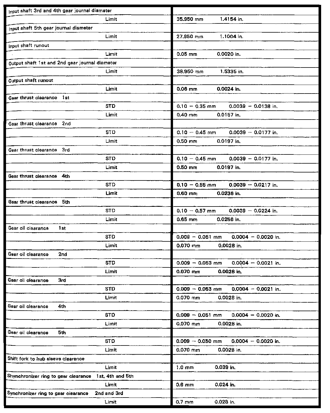 E53 5-spd M/T, Shaft Diameters / Gear Clearances: