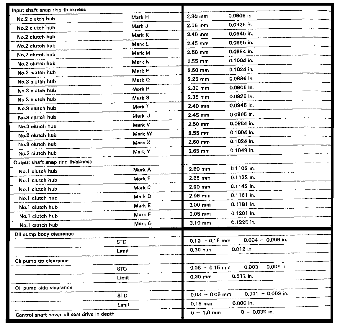 E53 5-spd M/T, Input Shaft Thickness /Oil Pump Clearance: