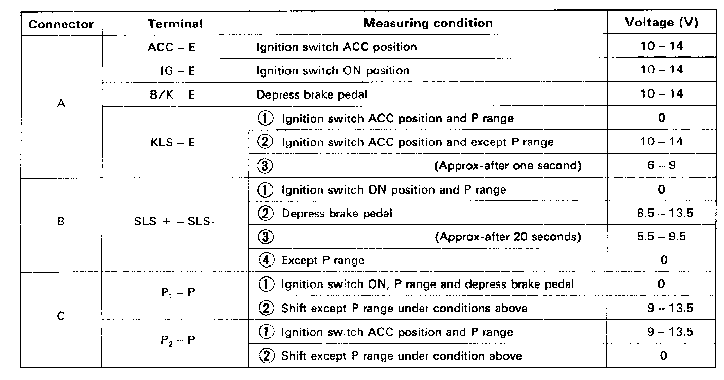 INSPECT SHIFT LOCK CONTROL ECU