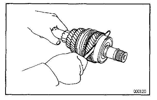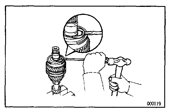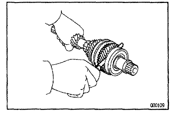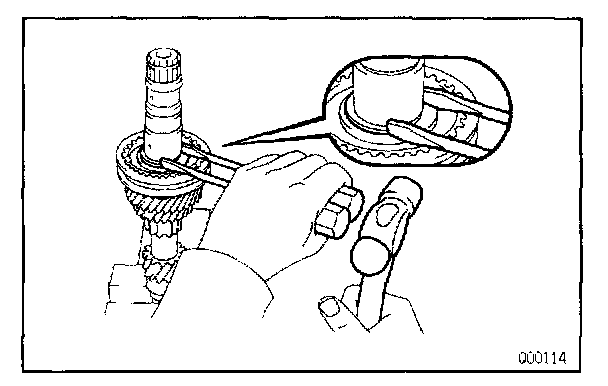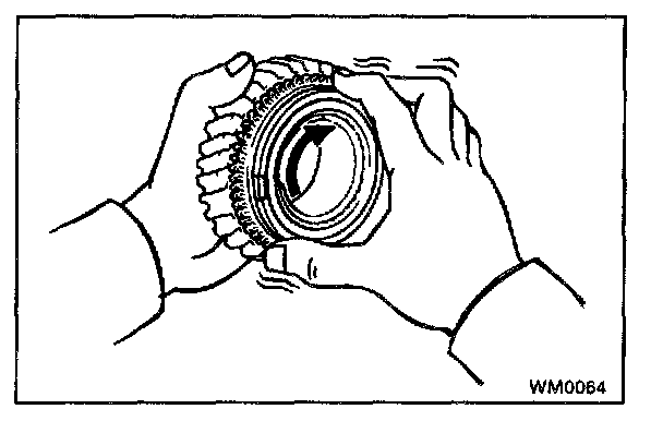 b. Check the braking effect of the synchronizer ring. Turn the synchronizer ring in one direction while pushing it to the gear cone and check that the ring is locked.