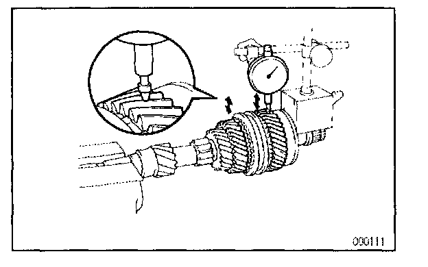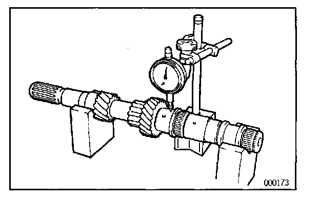 Using dial indicator, measure the oil clearance between the gear and shaft.