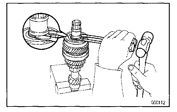 c. Measure the clearance between the synchronizer ring back and gear spline end.