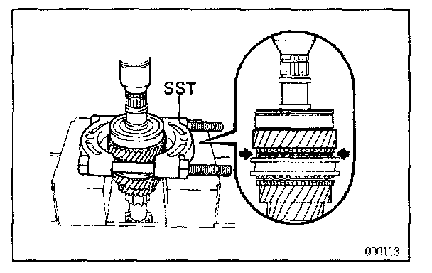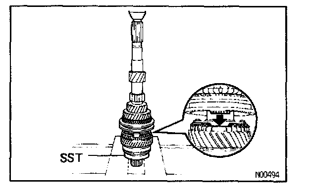 d. Using SST and a press, install the 3rd gear and No.2 hub sleeve.