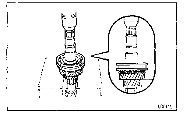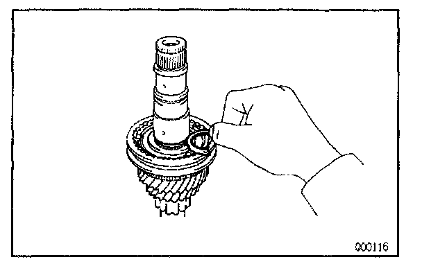 5. INSTALL SPACER, SYNCHRONIZER RING, NEEDLE ROLLER BEARINGS, FOURTH GEAR AND RADIAL BALL BEARING