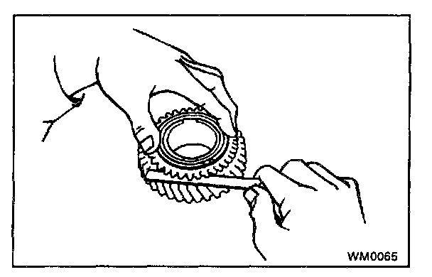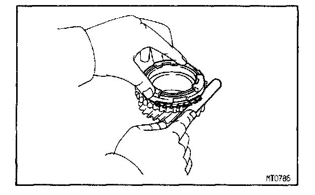 If the braking effect is insufficient, lightly rub the synchronizer ring and gear cone by applying a small amount of fine lapping compound.