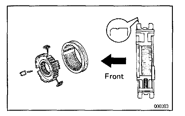 HINT: Direct identification groove of the hub sleeve to front of the transmission.