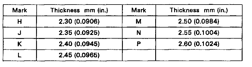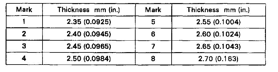 Standard clearance: 0.10 - 0.45 mm (0.0039 - 0.0177 in.)