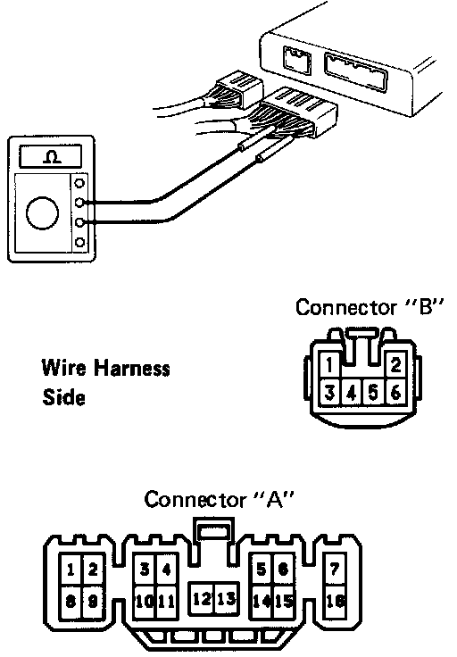 Connect the connectors and using a voltmeter with high impedance (10 k Ohms per volt minimum), measure the voltage at each terminal and body ground.