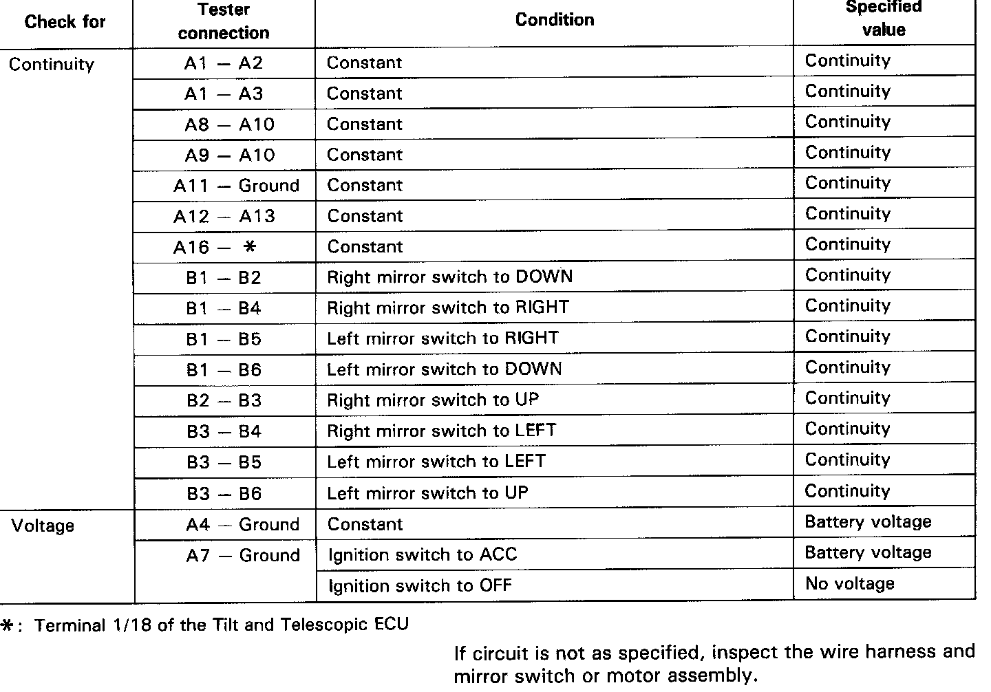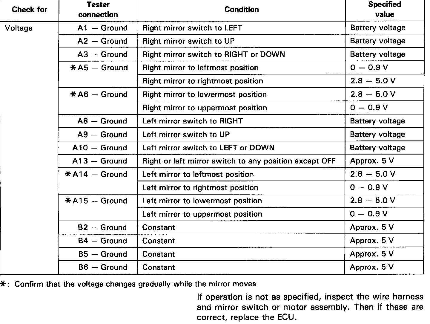 INSPECTION OF MIRROR ECU