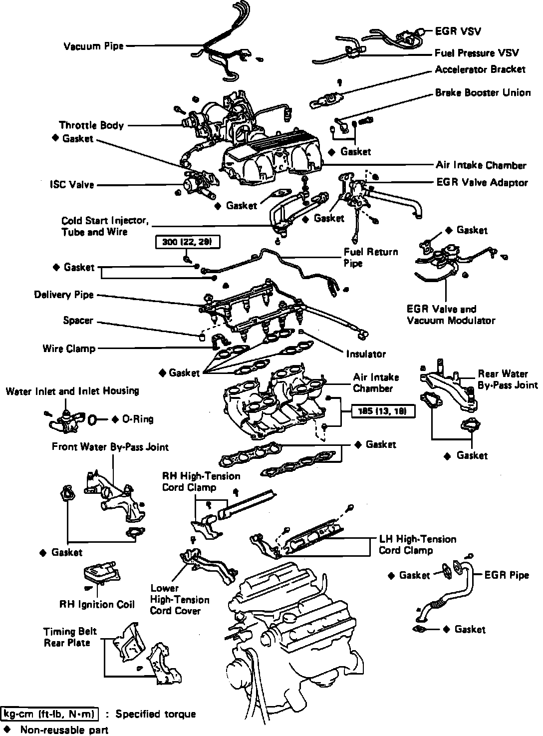 c. Remove bolts and nuts to intake chamber, then remove intake chamber.