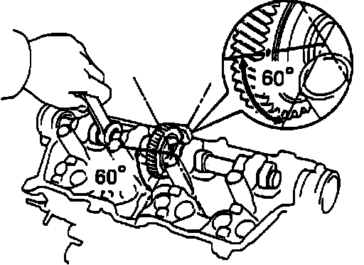 i. Set timing mark of lefthand intake camshaft at 60° by turning cam with wrench, Fig. 22.