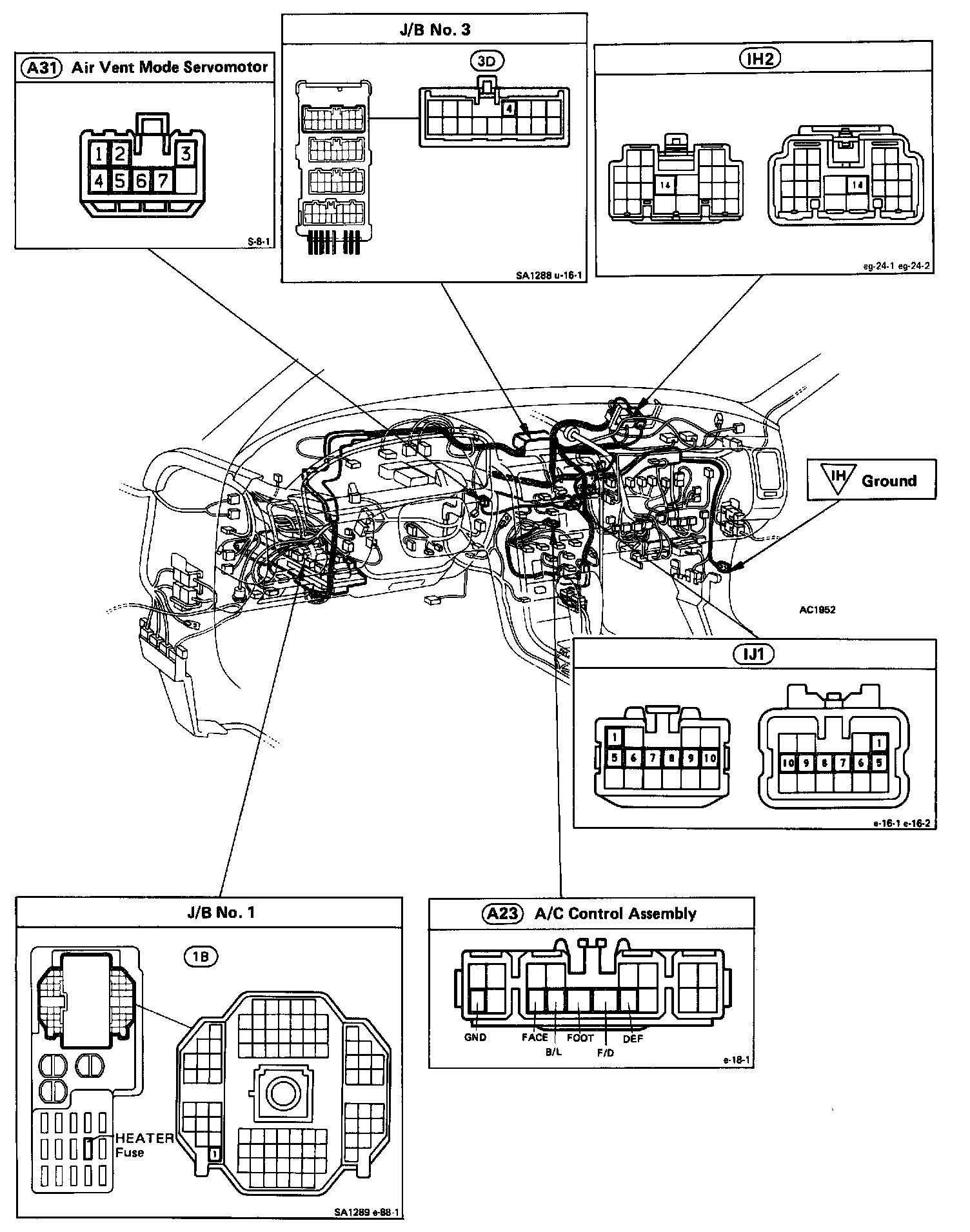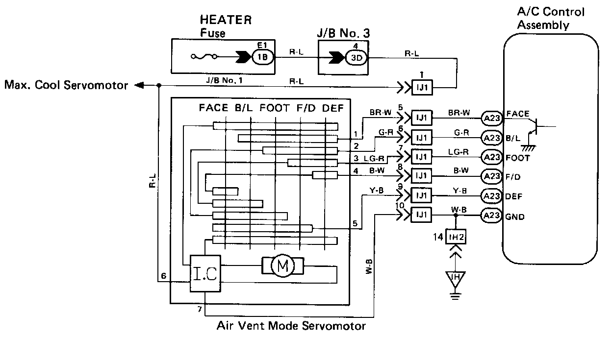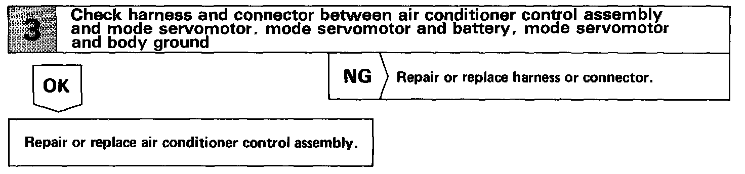This circuit turns the servomotor and changes each mode damper position by the signals from the ECU.