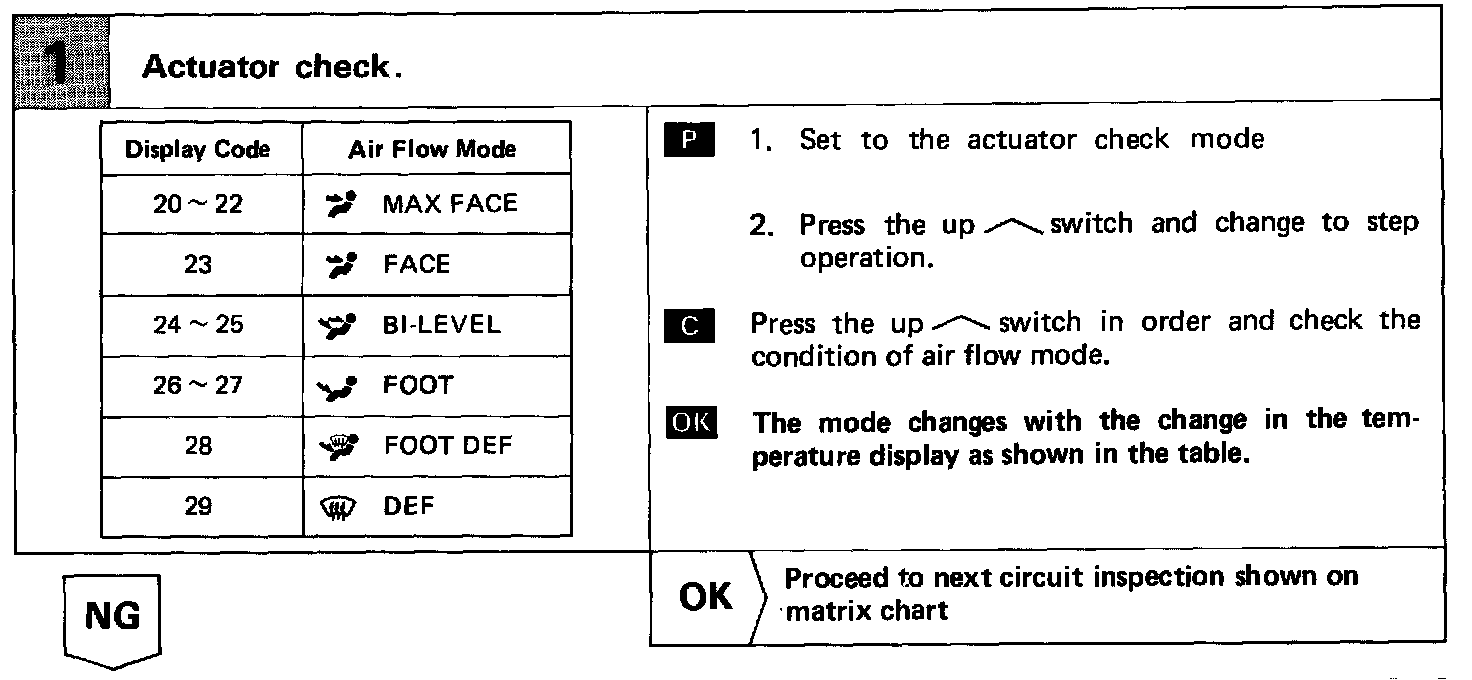 When the AUTO switch is on, the ECU changes the mode automatically between (FACE), (BI-LEVEL) and (FOOT) according to the temperature setting.