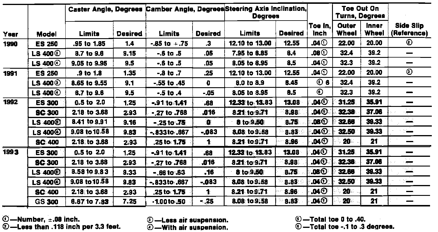 Front Wheel Alignment Specifications: