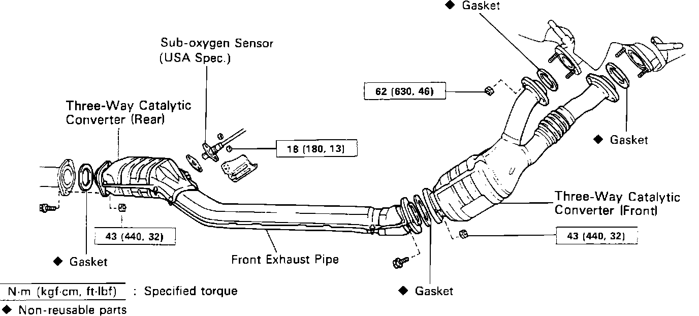 Sub-oxygen sensor - 13 ft.lb (18 Nm)