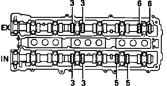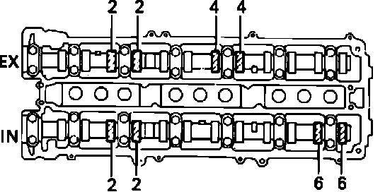 14. Record valve clearance measurements of those that are out of specification. They will be used later to determine required size of replacement adjusting shim.
