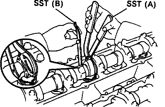 b. Turn valve lifter with a screwdriver so that its notches are perpendicular to camshaft, Fig. 30.