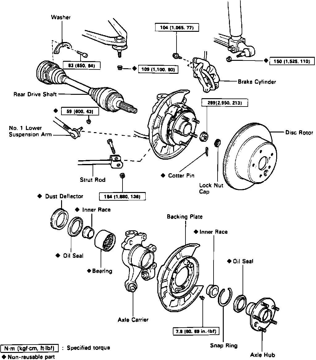 c. Connect No. 1 lower suspension arm to axle carrier and torque nut to 43 ft. lbs.