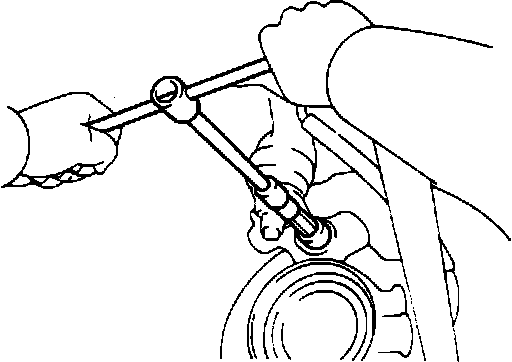 6. Install rear wheel and lower vehicle, then check rear wheel alignment.