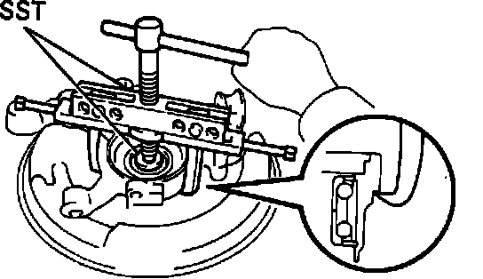 Fig. 15 Removing Inner Race (outside) From Axle Hub: