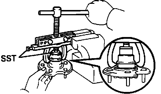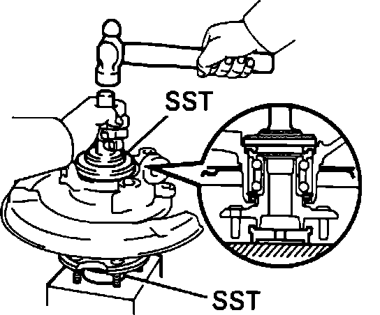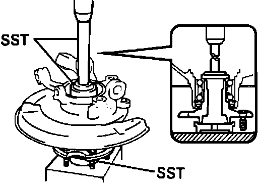 a. Install bearing to axle hub using a press and special service tools Nos. 09309-36010 and 09608-32010 or equivalents.