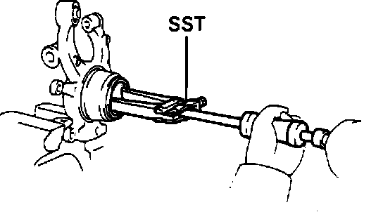 b. Mount axle carrier in a vise, then using special service tool No. 09308-00010 or equivalent, remove oil seal, Fig. 13.