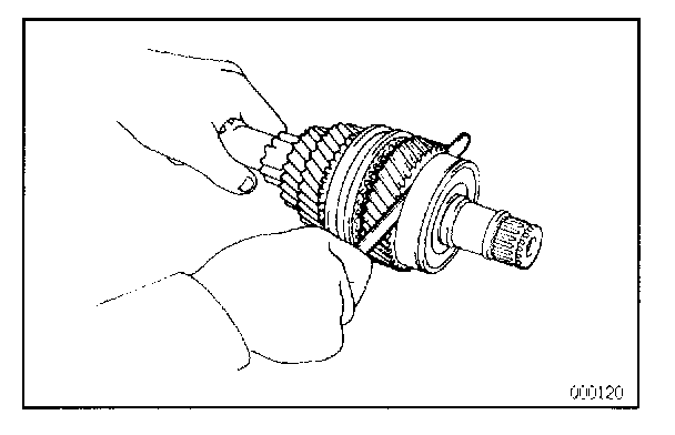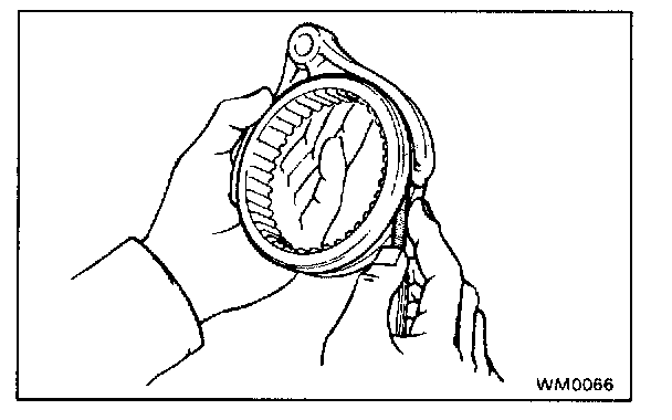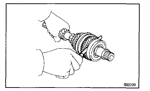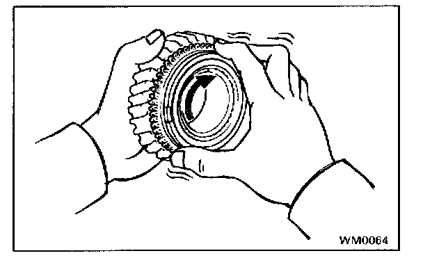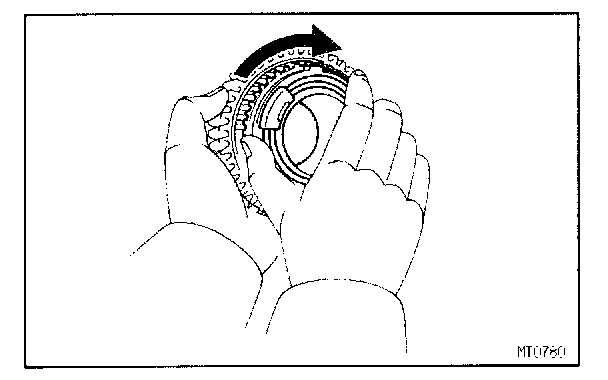 b. Check the braking effect of the synchronizer ring. Turn the synchronizer ring in one direction while pushing it to the gear cone and check that the ring is locked.