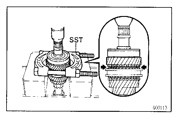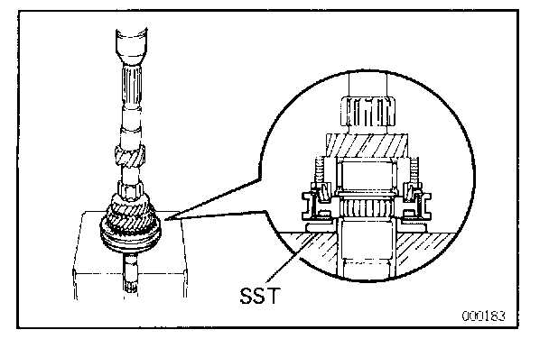d. Using SST and a press, install the 3rd gear and No.2 hub sleeve.